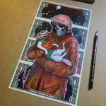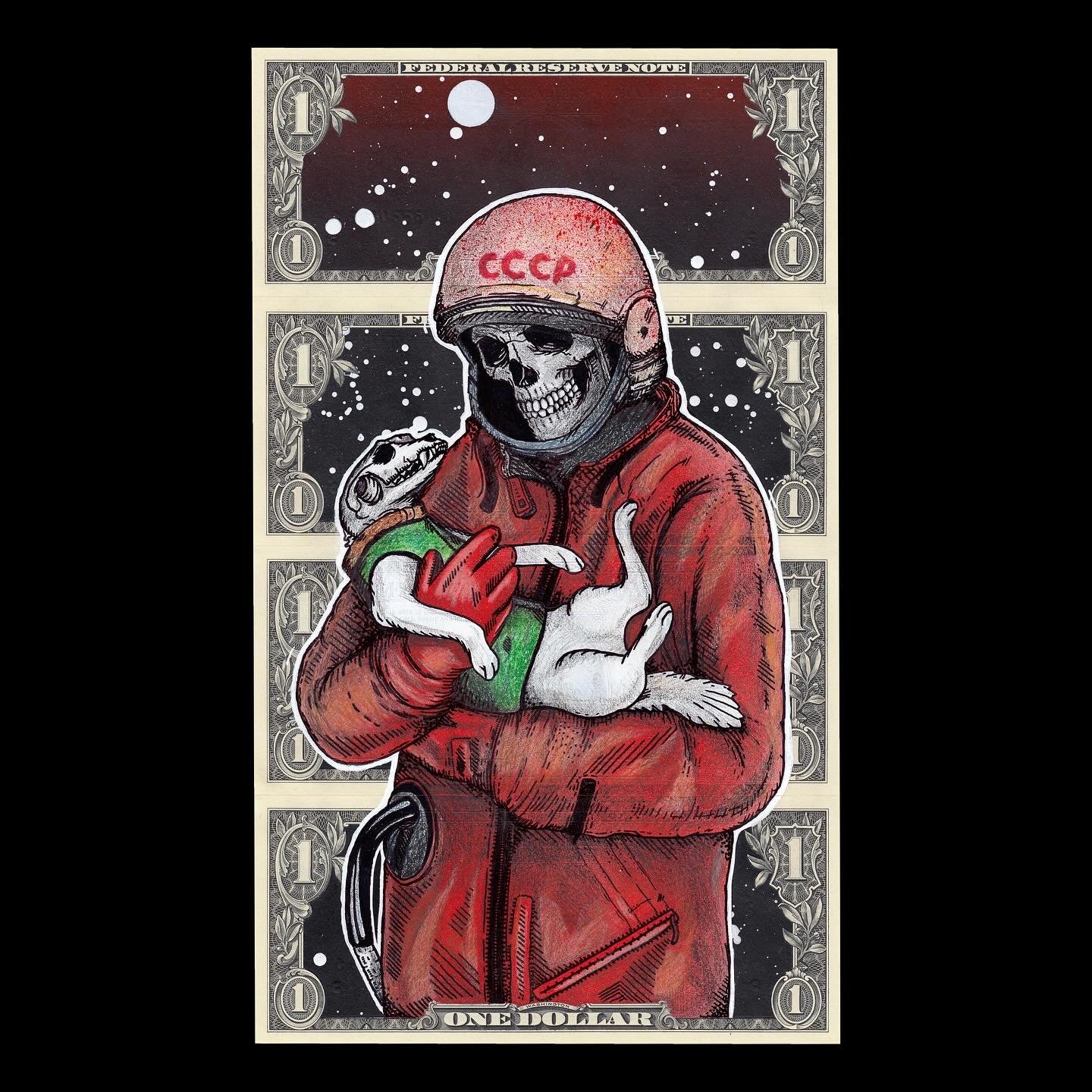 Spray paint, pencil, and ink on 4 x $1’s