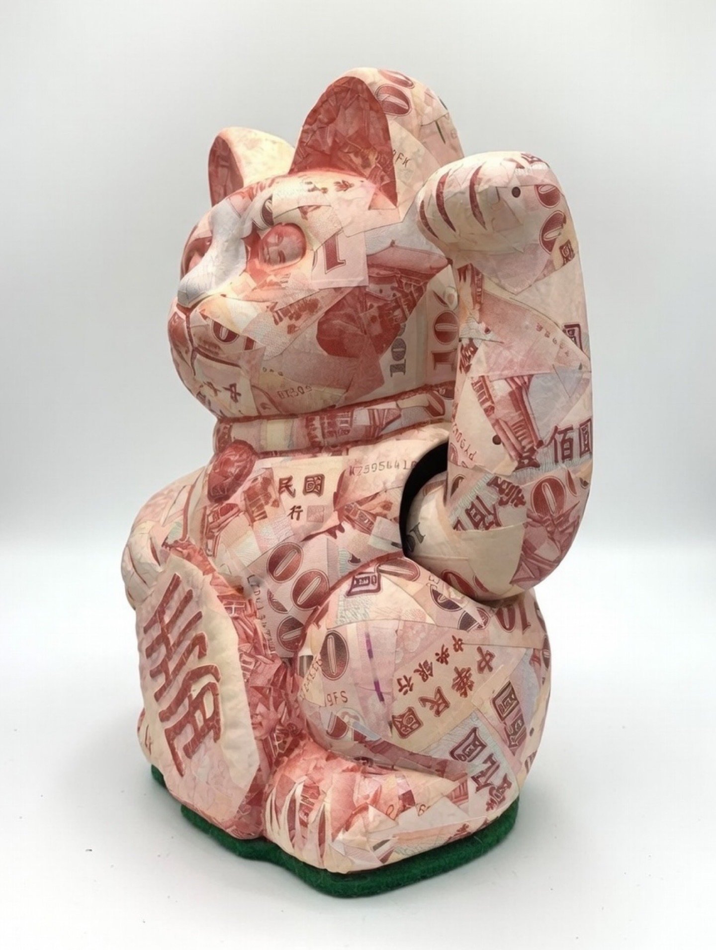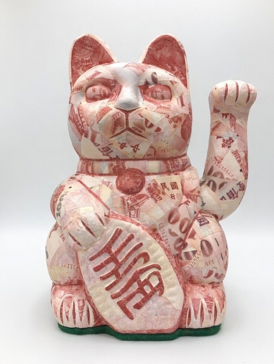 This Maneki-neko is covered in real Taiwanese banknotes.